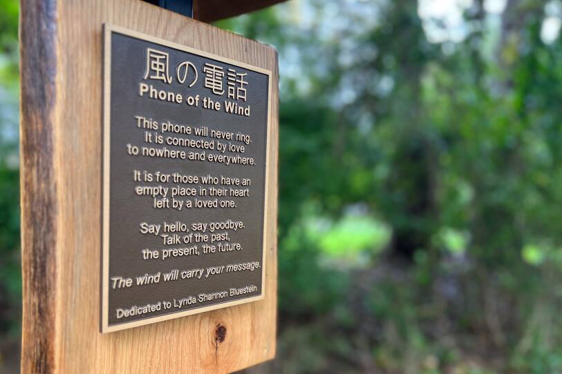 “I don’t think that when my body dies that’s the end of me,” she said. “I think there’s so much more, and I want them to know we’re still connected by love. I saw having a wind phone here as a place where my family and friends can go and keep me alive.”