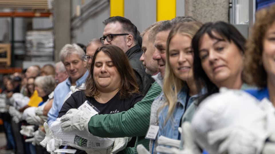 The event at the Greater Boston Food Bank warehouse brought together elected officials, service providers, food distributors and volunteers. Participants formed a human chain to pass 1,200 turkeys that will be donated to families. Altogether, the food bank expects to distribute 46,000 turkeys and other food items to pantries throughout the holidays.
